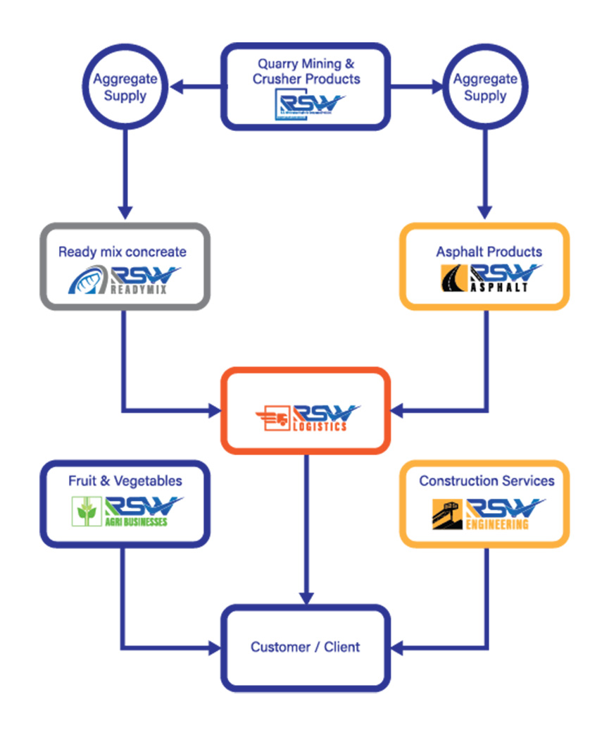 The company operates in several key sectors, including manufacturing crushed aggregate and quarry mining, asphalt concrete supplying and laying, readymix concrete supplying and laying, heavy machinery and dump truck hiring, civil engineering, importing heavy construction machinery, and sustainable agriculture